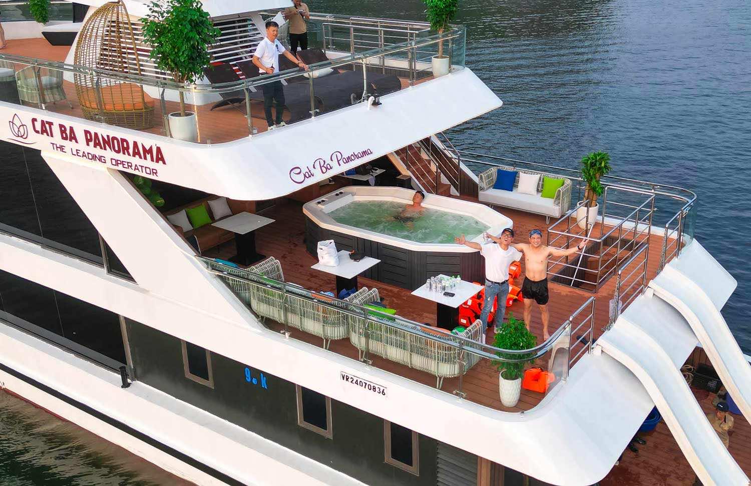 • Luxury Cruising Experience: The only day boat featuring a 4-season Jacuzzi, water slide, spacious sundeck, and air-conditioned dining area.