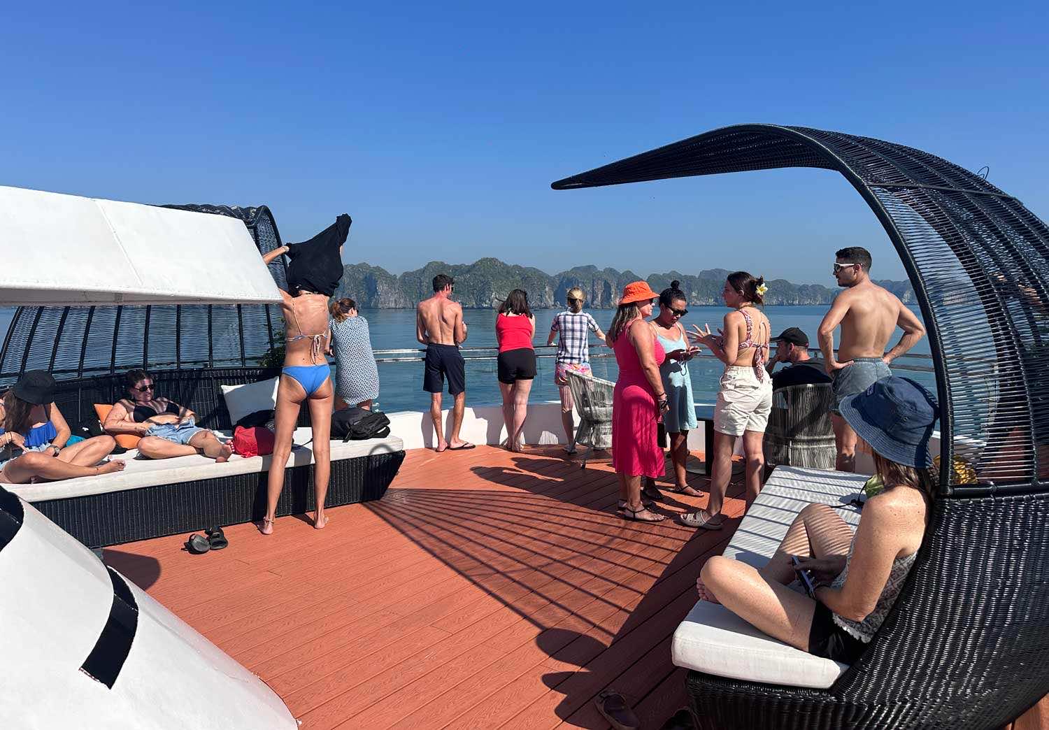 16:30 – 17:15 | Sunset Party: The "golden hour." Relax on the sundeck with complimentary tea, fresh fruits, and cakes while watching the magical sunset over Lan Ha Bay.